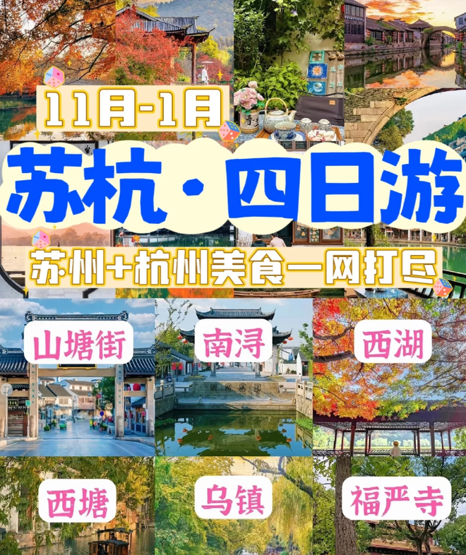 1月的苏杭正是游玩的好时节! 气温适中,快来看看这份4天3晚的旅游攻略,带你们深度体验杭州、乌镇和苏州的美丽与魅力! 一定要来感受一次!有需要找苏杭导游小田:173 2606 0989(长按复制添加)