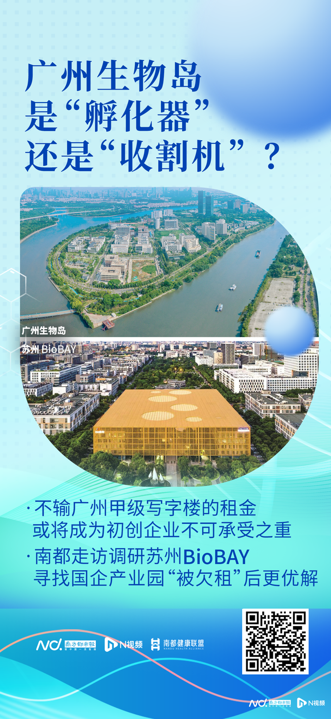 广州生物岛降租前后的场地成本与苏州工业园区BioBAY的比较。南都制图:何欣