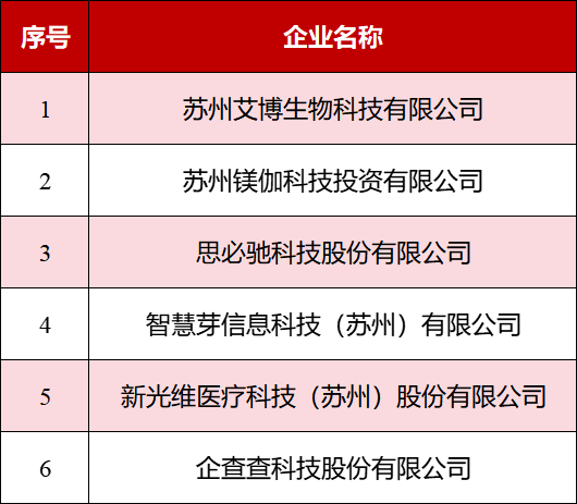 苏州市共有12家独角兽企业入选,园区6家,占全市50%。