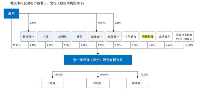 目前,强一股份的实控人是周明,直接持有27.93%的股份,间接持有13.83%的股份。并且周明还与股东徐剑、刘明星、王强分签订《一致行动协议》,目前周明及一致行动人合计持有强一股份50. 05%的股份。