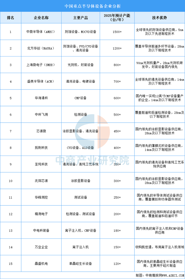 2025年中国半导体设备企业产能排名(图)