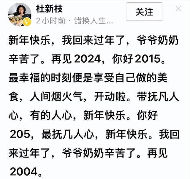 杜新枝新年的文案,成功引起了网友的关注,不过她社交平台上发的文案,不是这个风格,为什么这一次有失水准呢?