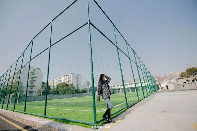 足球场暂时还没有开放,不过在门口也能拍出大片,可惜今日君没有穿运动服,只能随意的摆摆pose,相信运动风的少女在这里拍照,一定是元气十足~
