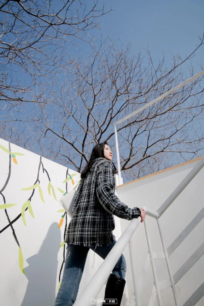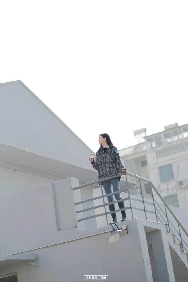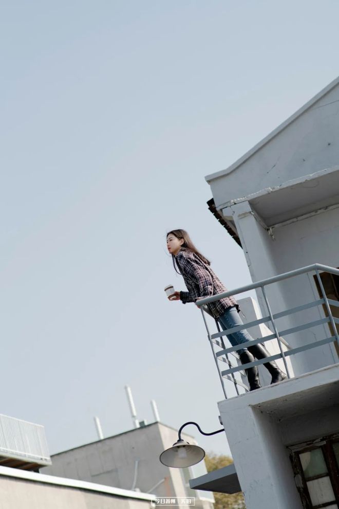 灰色格调的墙体、工业风十足的楼梯,往上一站,天空就是最佳的背景板,随手便能拍出网红感。