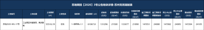 2020年2月5日,3号公告挂出园区1宗住宅用地,3号公告于今日(3月13日)正式开拍落锤,这也是2020年春节后苏州的首场宅地土拍