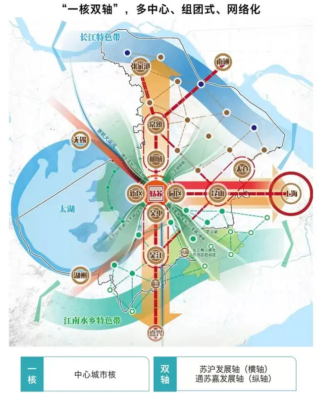阳澄南岸创新城、吴淞湾未来城、独墅湖西岸新城、甪瑞新区、独墅湖科教创新区(东区),城市副中心将不断向外围扩充。
