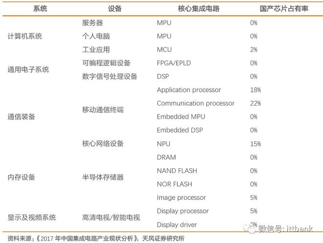 自中美贸易战打响后,通过“中兴事件”和“华为事件”我们可以清晰的看到,核心的高端通用型芯片领域,国内的设计公司可提供的产品几乎为0。