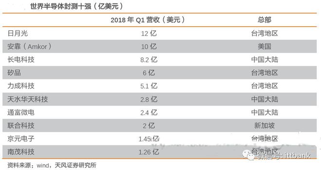 封测行业我国大陆企业整体实力不俗,在世界拥有较强竞争力,美国主要的竞争对手为Amkor 公司,在华业务营收占比约为18%,封测行业美国市场份额一般,前十大封测厂商中,仅有Amkor 公司一家,应该说贸易战对封测整体行业影响较小,从短中长期而言,Amkor 公司业务取代的可能性较高。
