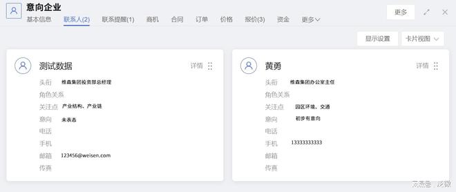 各岗位工作人员可以根据不同权限,查看自己的招商信息源或共享招商信息源,并对招商信息源信息进行编辑修改。一个台账展现了招商信息源基本信息、招商信息源联系记录、招商信息源共享设置等内容。