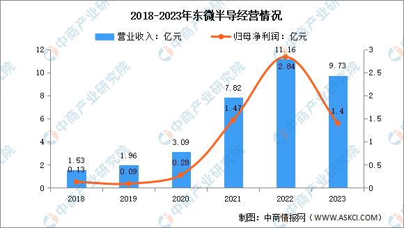 2023年实现营业收入9.73亿元,同比下降12.81%;实现归母净利润1.4亿元,同比下降50.7%。2023年主营产品包括功率半导体产品、晶圆,营收分别占整体的92.53%、7.47%。