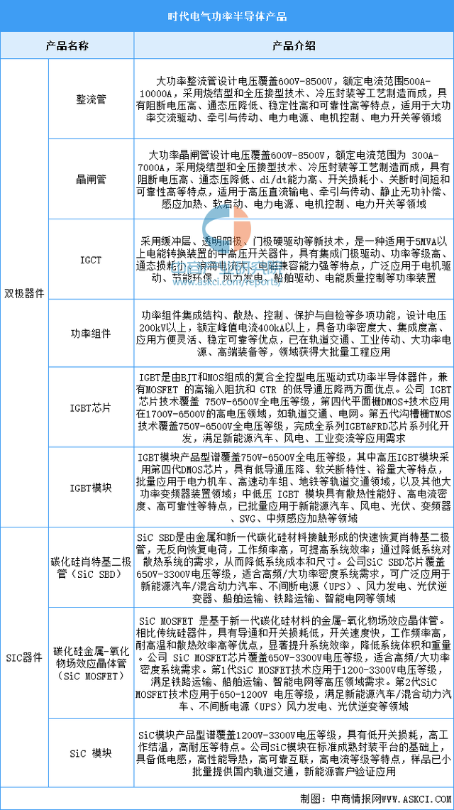 时代电气是全球为数不多的同时掌握IGBT、SiC(碳化硅)、大功率晶闸管及IGCT器件及其组件技术的企业,且集器件开发、生产与应用于一体,采用“设计-制造”一体化的IDM模式进行生产。
