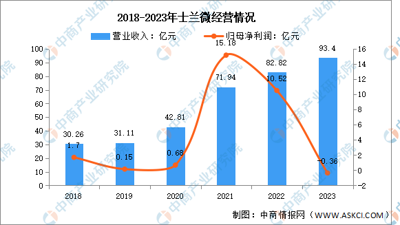 2023年实现营业收入93.4亿元,同比增长12.77%;归母净利润亏损0.36亿元。2023年主营产品包括分立器件产品、集成电路、发光二极管产品,营收分别占整体的51.74%、33.50%、7.94%。